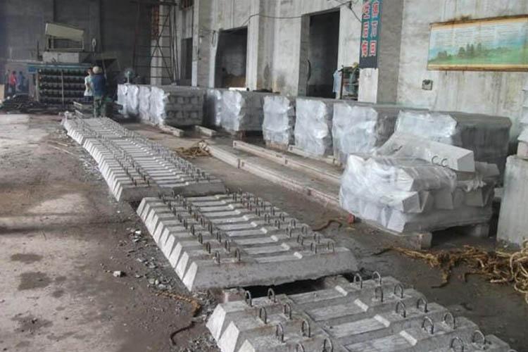 900軌距水泥枕木由水泥,沙子,石子,高強(qiáng)螺紋鋼組成,除了具有不怕水,不怕曬,不怕腐蝕等特點(diǎn)外,還具有穩(wěn)定性強(qiáng),使用壽命強(qiáng),絕緣性好,養(yǎng)護(hù)費(fèi)用低等優(yōu)點(diǎn)。900軌距水泥枕木安裝時(shí)只需要用錘子砸彎即可,安裝使用非常簡(jiǎn)便,適合軌道的敷設(shè)。臨時(shí)軌道使用后,鋼筋扣件可以用鎬取直后用去其他線路的敷設(shè),很容易實(shí)現(xiàn)重復(fù)利用。
